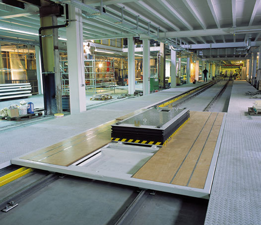 In the early stages of manufacture, electric overhead traveling cranes ( EOT) handle steel coils, foundry parts, and raw materials. Transfer cars take tooling and materials to and from the presses in the press shop. Components are transferred by Electrified Monorail Systems ( EMS) to the body shop, where “bodies in white” (BIW) take shape. EMS or powered skid conveyors move raw car bodies to the paint shop. Large scale Automated Storage and Retrieval Systems ( AS/RS) provide a storage buffer for just-in-time sequencing of assemblies. Automated guided vehicles ( AGV) and rail guided vehicles (RGV) are used at the drive train pre-assembly lines and at the “marriage line” (chassis decking). In final assembly, EMS and conveyors operate under the ceiling, while skillet lines work at floor level. Assembly workers need workstations, hoists, tool balancers, and tool transports for required tools, as well as electric and pneumatic power to operate them.