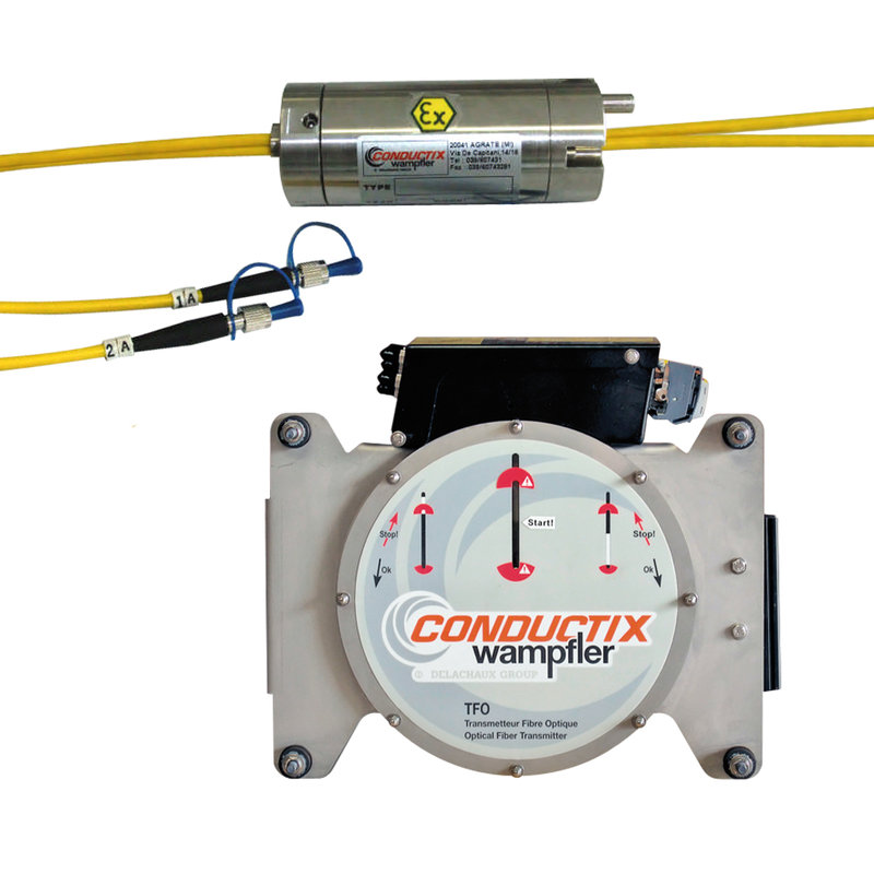 A Fiber Optic Rotary Joint (FORJ) is a means to pass optical signals across a rotating joint. In this way, the FORJ acts like an electrical slip ring, but with light signals. Light signals can pass through two parts that rotate relative to each other. Using Plastic Optical Fibers (POF) light is transmitted contactless over passive and independent channels. This means long life with no maintenance and without the potential problems that can affect slip rings such as vibration, humidity, and magnetism.